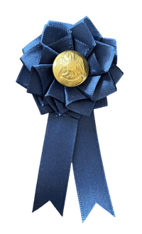 Each royal blue silk cockade with brass pelican button is made by hand in South Carolina.